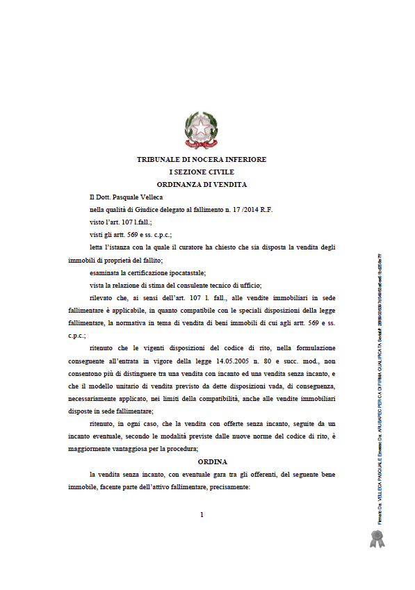 Fallimento n. 17/2014 R.F. del Tribunale di Nocera Inferiore |
