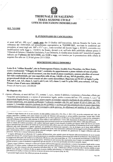 Esecuzione immobiliare n. 713/1995 R.E. del Tribunale di Salerno |