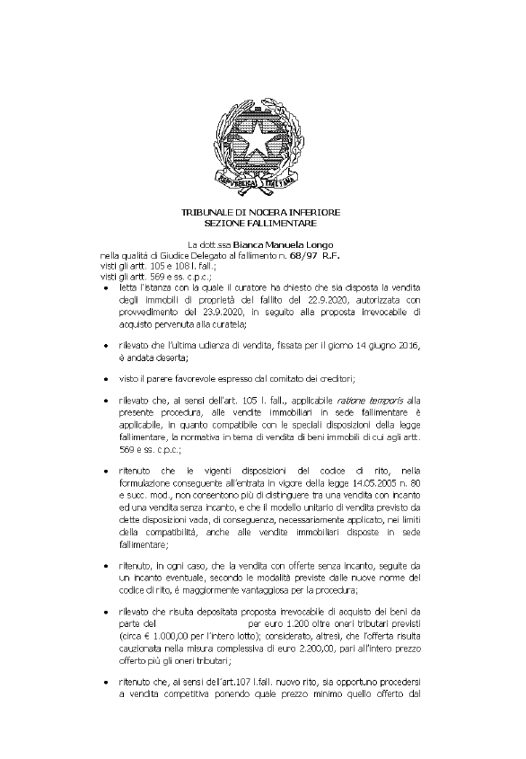 Fallimento n. 68/1997 R.F. del Tribunale di Nocera Inferiore |