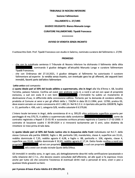 Locale terraneo e fondo rustico | Angri (SA) ed Acquaviva delle Fonti (BA) | 18/01/2022 | |||||||||||||||||||||||||||||||||||||||||||||||