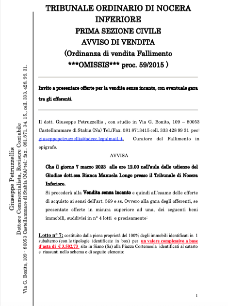 Fallimento n. 59/2015 del Tribunale di Nocera Inferiore |