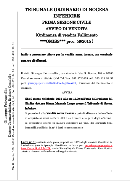 Fallimento n. 59/2015 del Tribunale di Nocera Inferiore |